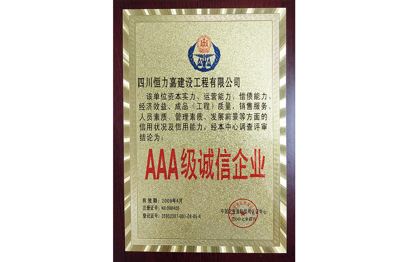 • 2007年4月AAA級誠信企業